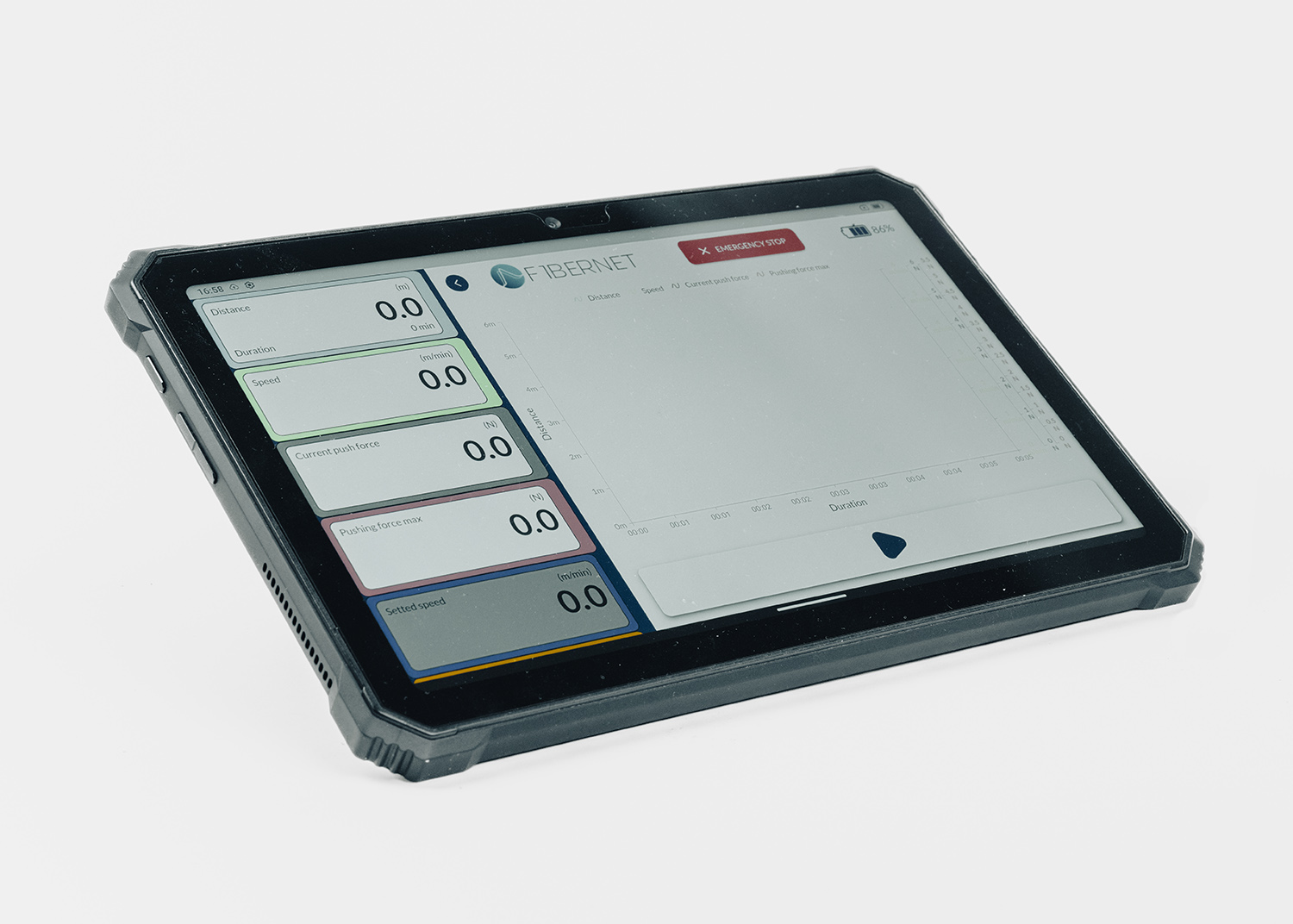 A dedicated tablet with the Fibernet App generates a complete installation report with all laying parameters via Wi-Fi connection. Reports can be sent by email or saved to a USB drive.