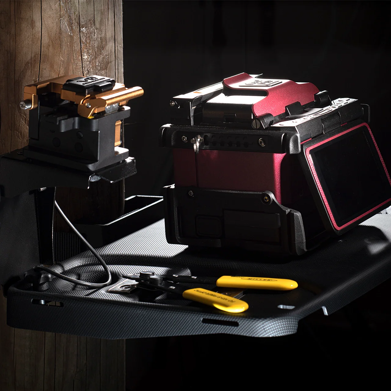 UN1CO Mobile is a smart tray designed for FTTH applications, created to securely hold the splicer, cleaver, and all essential field tools.